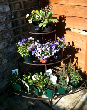 The garden’s coming along nicely, with this funky new pot holder that I bought online and screwed together myself. I’m getting pretty nifty with a screwdriver, as you can see.