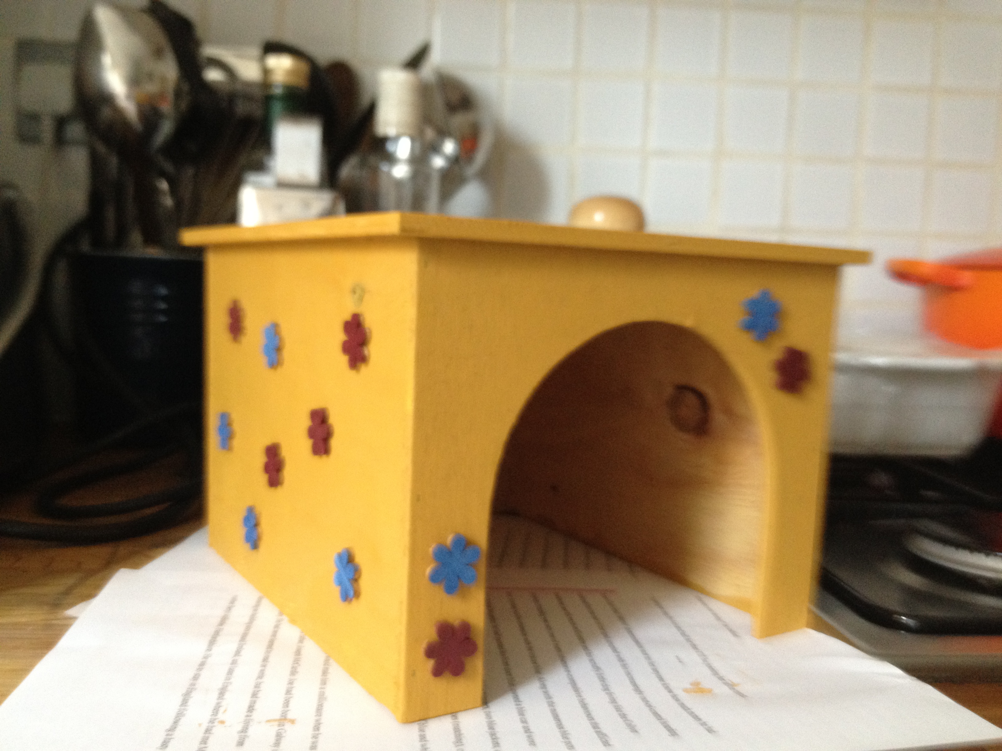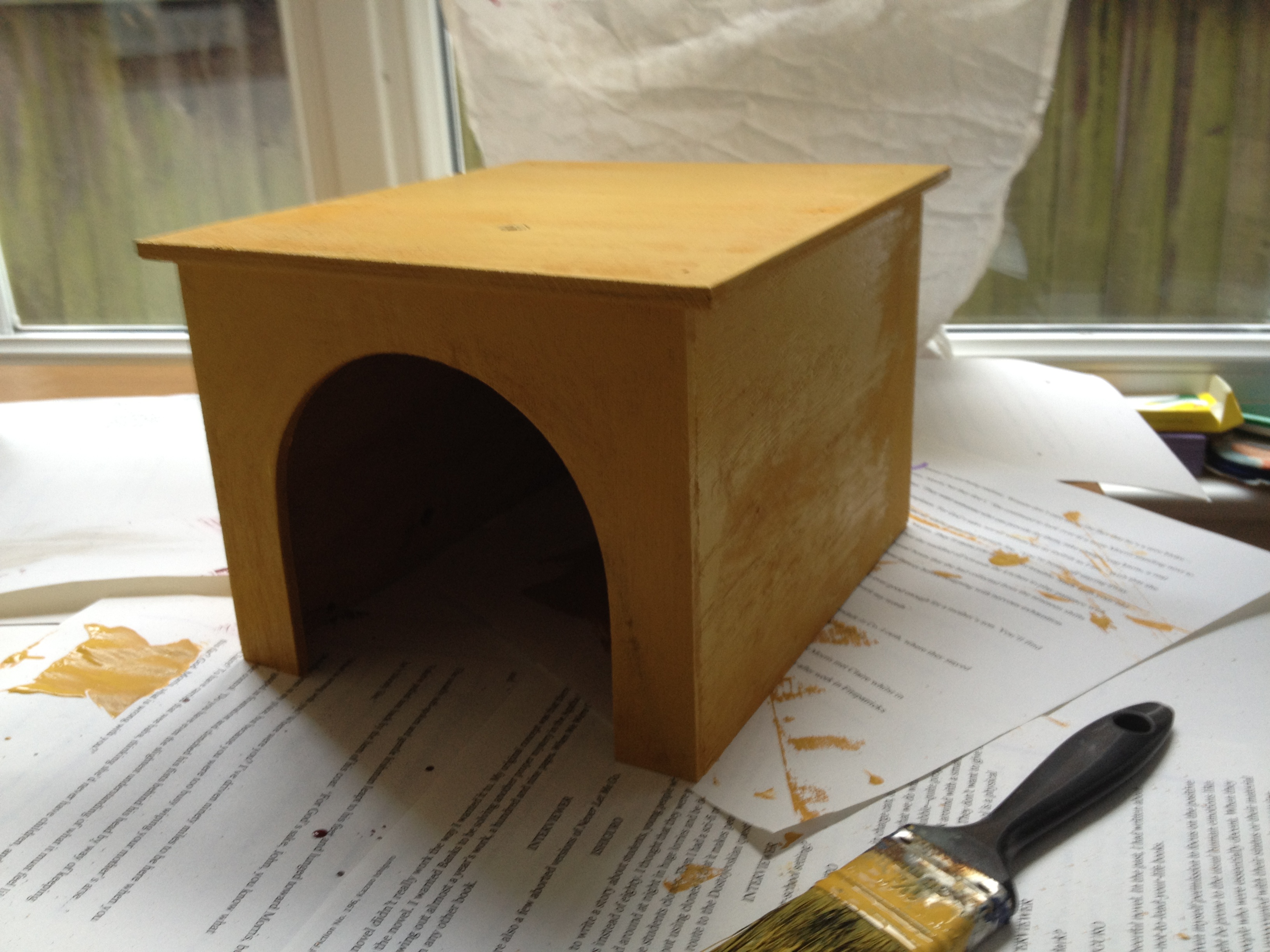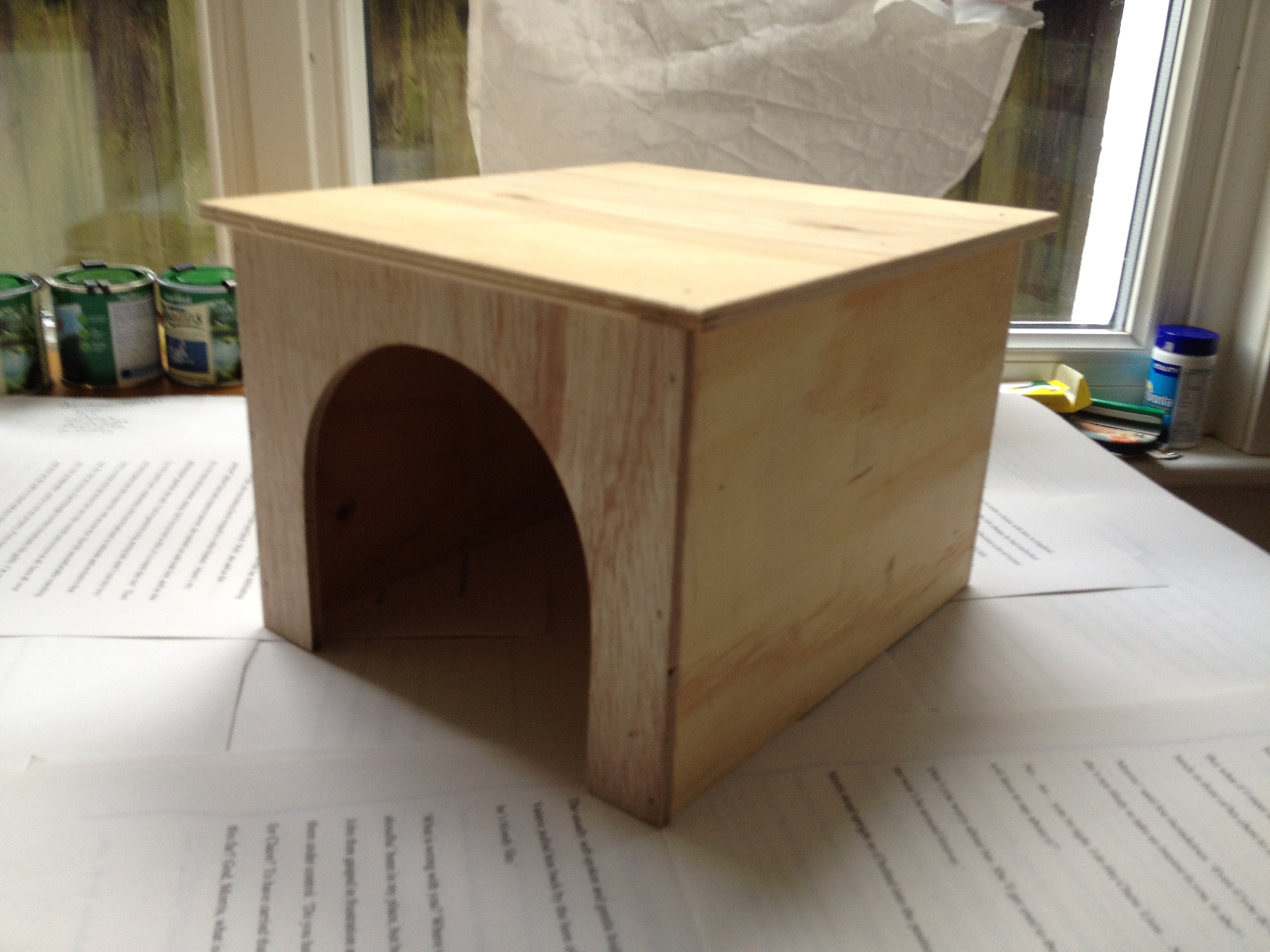 Today, still waiting for the corrugated plastic which should arrive on Monday, I set about decorating a couple of hidey-holes for the little guys. I started with some very simple wooden huts which I bought online.