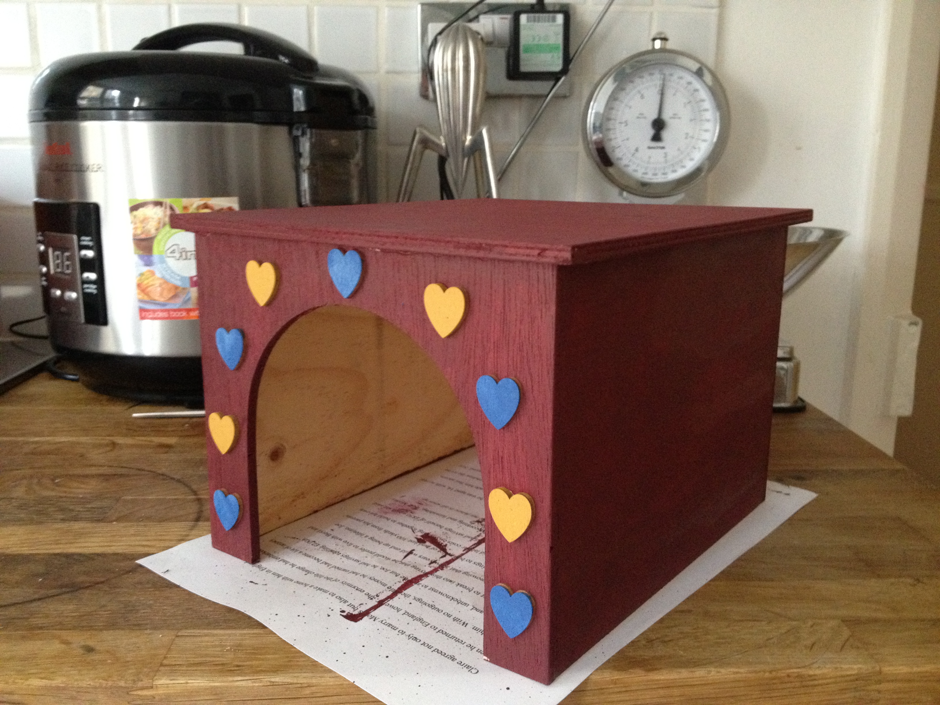 Then, using a paint I was assured was pet-friendly and wouldn’t cause too many problems if it got chewed a little, I made them my own. If, when we get the pigs, they decide they like to chew them a little too much, I’ll probably take them out – not sure I like the idea of them eating paint, however ‘safe’ it is.